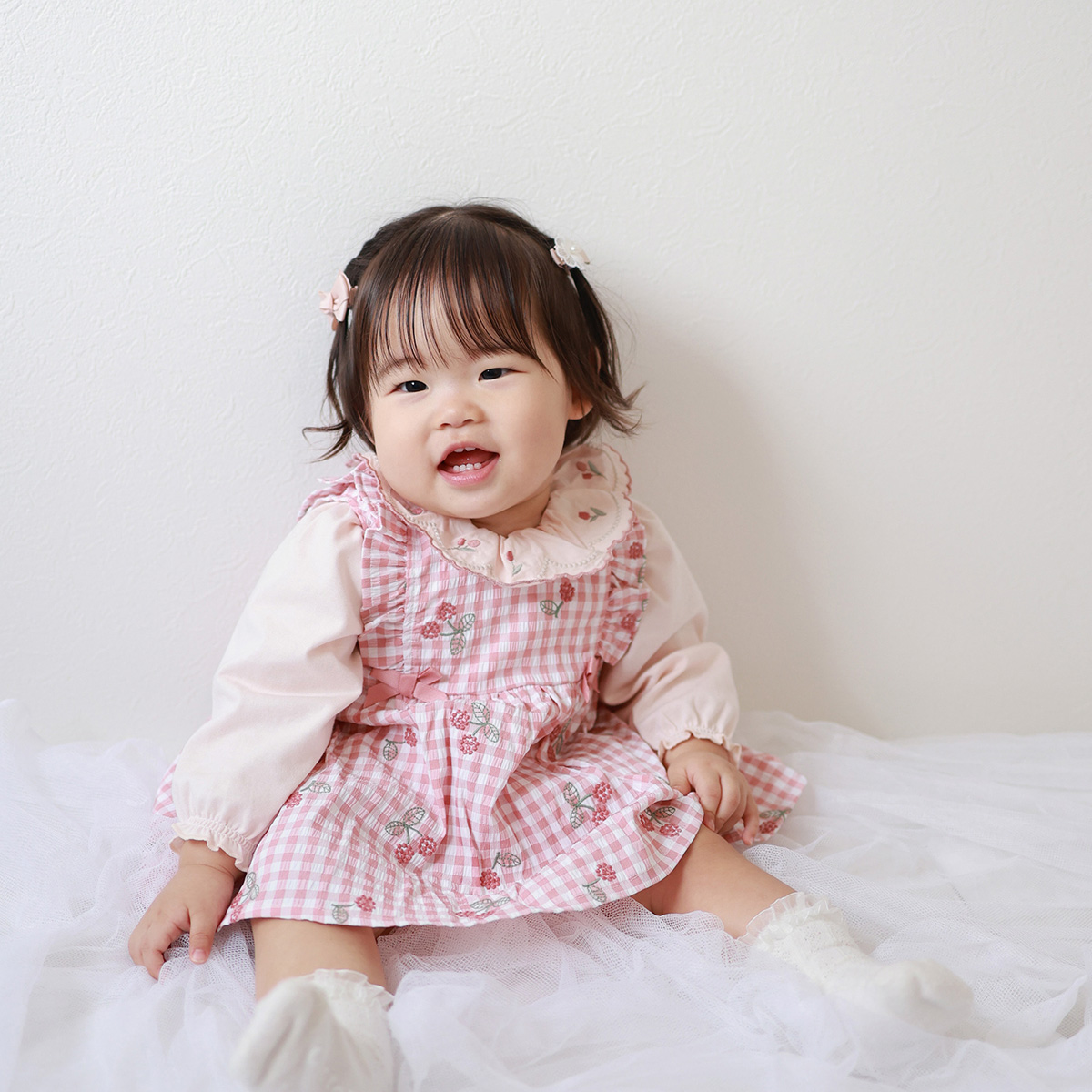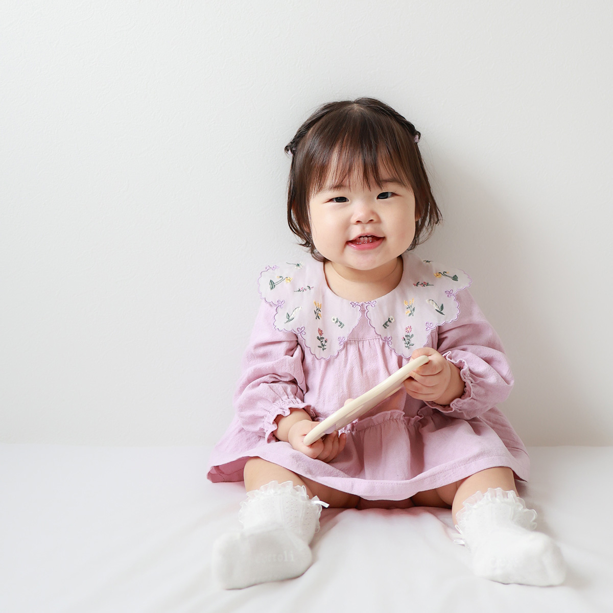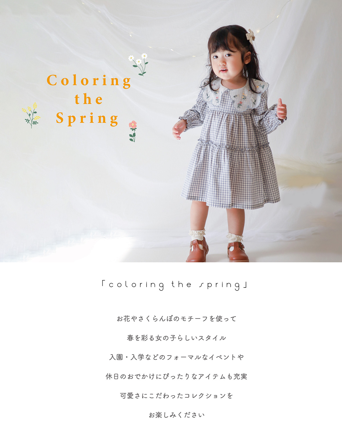女の子が大好きなフリルやお花モチーフ。ふんわりシルエットのお洋服は、お子様自身も着たくなるような仕掛けが施されています。デザイナーは子育て中。お母さん目線で考えた、子育てを少しでも楽しく、ラクにする機能性にもこだわりました。